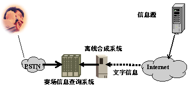 離線合成系統(tǒng)在用戶電話呼入前,將需要播放的文本信息預(yù)先轉(zhuǎn)換成語音文件存放在系統(tǒng)中,當電話用戶呼入系統(tǒng)后,系統(tǒng)直接向用戶播放事先生成的語音文件。離線合成方式適用于作賽事快報、明星風采、賽場花絮等公共信息類信息服務(wù)。