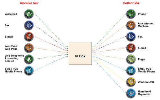Ø 由固定/移動電話運(yùn)營商、ISPs 以及ASPs提供服務(wù)。服務(wù)包括單一信息通知到完全統(tǒng)一信息。用戶可將其所有類型的信息存儲在一個信箱中并且通過電話或網(wǎng)絡(luò)瀏覽器獲取。