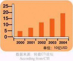 - 在CRM方面,2000年產(chǎn)值為50億美元,預(yù)計(jì)在2004年市場產(chǎn)值將達(dá)到190億美元。