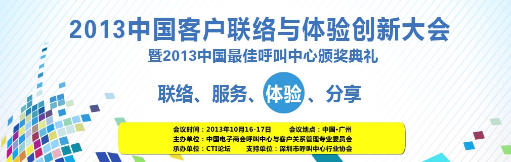 2013中國客戶聯(lián)絡(luò)與體驗創(chuàng)新大會暨2013中國最佳呼叫中心頒獎典禮 火熱報名中!