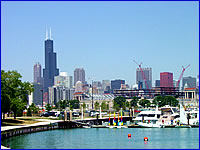 芝加哥并不是一個(gè)旅游城市,人口也只有200多萬(wàn)。如果說(shuō)觀光景點(diǎn)的話,就只有位于城市中心由近40多座高樓組成的摩天大樓群,高聳入云的高樓一座連著一座,使得芝加哥整個(gè)城市看上去象是鋼筋水泥構(gòu)成的森林,充滿了大都市的氣魄。其中的西爾斯大廈(Sears Tower),在紐約的世貿(mào)大廈毀于恐怖事件之后,成為全美最高建筑。