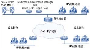 在企業(yè)總部部署Cisco 公司模塊化的IP/VC 3540 MCU(多點(diǎn)制單元,Multipoint Control Unit),每個(gè)IP/VC