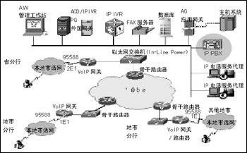 而要有效地解決上述兩個問題,首先在當(dāng)?shù)匾薪尤朦c,和當(dāng)?shù)氐碾娦挪块T相聯(lián),使得當(dāng)?shù)氐目蛻艨梢酝ㄟ^撥打市話接入系統(tǒng);其次,要通過長途接續(xù)的手段建立當(dāng)?shù)乜蛻艉吞m州的呼叫中心的語音連接,使得當(dāng)?shù)乜蛻艨梢缘玫教m州的人工及自動業(yè)務(wù)服務(wù);最后,利用工行內(nèi)部的SDH網(wǎng)絡(luò),實現(xiàn)業(yè)務(wù)數(shù)據(jù)的轉(zhuǎn)發(fā)。
