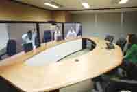 10月24日,在思科公司位于香港灣仔鷹君大廈的一間會議室,包括思科CEO錢伯斯在內(nèi)的六名高管已經(jīng)“坐”在橢圓型的會議桌一側(cè)!癏i!”隨著錢伯斯的一聲招呼,會議室內(nèi)的人這才發(fā)現(xiàn),正在講話的“錢伯斯”是在三塊連接起來的等離子屏幕上,而此刻他真實的位置是在思科位于美國硅谷的總部。65英寸的1080P高清晰屏幕上,錢伯斯等人的影像如真人大小,加上三塊屏幕被設計成會議桌的另外一半,讓人誤以為錢伯斯真的來到了香港。