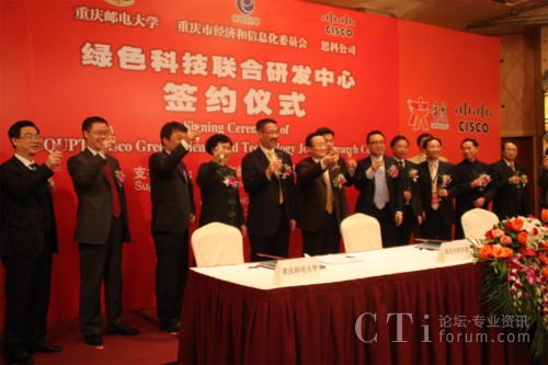 CTI論壇(ctiforum)2月3日消息(記者 潘婷):2月3日上午,思科公司與重慶郵電大學(xué)正式簽訂合作協(xié)議,共建“重慶郵電大學(xué)-思科綠色科技聯(lián)合研究實(shí)驗(yàn)室”。“綠色科技聯(lián)合研究實(shí)驗(yàn)室”的成立是思科履行其致力于推動中國創(chuàng)新和可持續(xù)發(fā)展承諾的重要舉措。此次合作中雙方將共同推動下一代互聯(lián)網(wǎng)、傳感器網(wǎng)絡(luò)以及綠色科技等領(lǐng)域的研發(fā),推進(jìn)應(yīng)用推廣和產(chǎn)業(yè)化發(fā)展,實(shí)現(xiàn)產(chǎn)學(xué)研一體化,幫助和支持重慶本土企業(yè)提高綠色科技創(chuàng)新的素質(zhì)和能力,進(jìn)而支持中國發(fā)展綠色經(jīng)濟(jì)、節(jié)能減排的長期戰(zhàn)略。