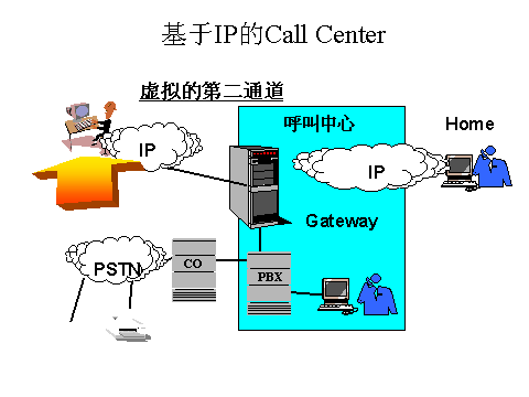 目前擁有呼叫中心基礎(chǔ)設(shè)施(這些設(shè)施包括自動(dòng)呼叫分配器ACD、IVR系統(tǒng)或呼叫管理系統(tǒng))的企業(yè)安裝一個(gè)互聯(lián)網(wǎng)電話網(wǎng)關(guān)作為通向ACD或呼叫中心轉(zhuǎn)換的前端。網(wǎng)關(guān)作為公用電話交換網(wǎng)與互聯(lián)網(wǎng)絡(luò)之間的橋梁,使呼叫中心能夠向客戶和潛在客戶傳送同步語音和數(shù)據(jù)服務(wù),所有這一切都通過一條電話線。按數(shù)字顯示,網(wǎng)關(guān)可通過模擬線路與現(xiàn)有設(shè)備連接,或通過數(shù)字線路與多媒體PC連接。這使得呼叫中心能夠利用其現(xiàn)有設(shè)備,工作人員培訓(xùn)和呼叫管理活動(dòng)中的原有投資。