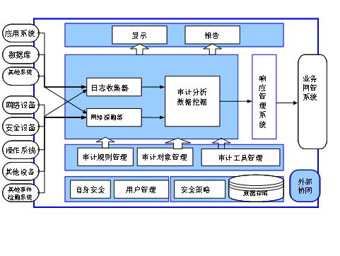 圍繞《薩班斯法案》第404條款的基本要求,結(jié)合運(yùn)營(yíng)商的業(yè)務(wù)支撐系統(tǒng)運(yùn)維特點(diǎn),面向業(yè)務(wù)系統(tǒng)的安全審計(jì)系統(tǒng)一般應(yīng)具備以下功能: