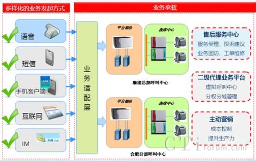 為了達(dá)到異地容災(zāi)的目的,新太科技為美的集團(tuán)在順德與和合肥分別設(shè)立了兩個呼叫中心,兩個呼叫中心通過廣域網(wǎng)絡(luò)連接起來。兩個呼叫中心都可以獨(dú)立運(yùn)作,同時又可以進(jìn)行統(tǒng)一管理。