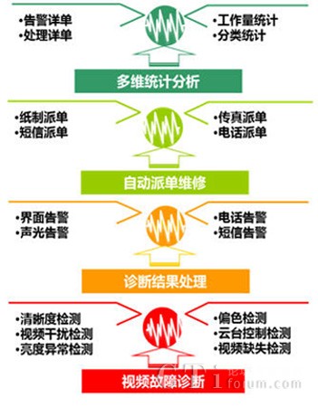 新太視頻故障診斷系統(tǒng)(SUNTEK-VFDS)基于先進(jìn)的計(jì)算機(jī)視覺技術(shù)、網(wǎng)絡(luò)技術(shù)、圖形圖像處理技術(shù),通過對各類視頻設(shè)備數(shù)據(jù)進(jìn)行采集、分析,實(shí)現(xiàn)對網(wǎng)絡(luò)故障、存儲故障、以及圖像出現(xiàn)的雪花、滾屏、模糊、偏色、畫面凍結(jié)、增益失衡、信號丟失和云臺失控等故障,做出準(zhǔn)確診斷和多種手段報(bào)警。該系統(tǒng)同時(shí)具備電子化的故障維護(hù)、跟蹤和考核流程,并提供多維分析統(tǒng)計(jì)功能,為監(jiān)控系統(tǒng)的穩(wěn)定運(yùn)行保駕護(hù)航。