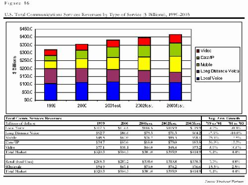 電信市場不是一個(gè)孤立的市場,而是由電信服務(wù)和電信制造兩個(gè)緊密相連的市場組成的。電信制造業(yè)不斷進(jìn)行研發(fā)創(chuàng)新,為電信服務(wù)業(yè)提供新的業(yè)務(wù);而電信服務(wù)也利用電信制造業(yè)的新技術(shù),并把這些服務(wù)最終提供給商業(yè)和普通消費(fèi)者兩類用戶?梢哉f,電信制造業(yè)的發(fā)展在很大程度上是由電信服務(wù)業(yè)決定的。要了解電信制造市場的將來,不得不從電信服務(wù)市場的變化談起。