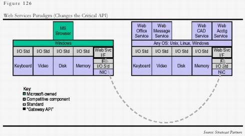 由于主要取決于業(yè)內(nèi)其他企業(yè)的接受,自身固定投資需求較少,操作平臺(tái)和應(yīng)用平臺(tái)成了價(jià)值鏈中最容易控制,相對而言也是爭奪最激烈的環(huán)節(jié)。做為最早理解了價(jià)值鏈的企業(yè),微軟在電信業(yè)內(nèi)正在積極復(fù)制自己在IT業(yè)的成功,希望獨(dú)占運(yùn)營價(jià)值鏈中的應(yīng)用平臺(tái),這就是其極力鼓吹的.Net概念!