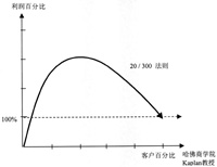 對客戶群的分析,經(jīng)濟理論界有一個著名的80-20理論,即在一個企業(yè)中,通常是20%的客戶貢獻了80%的利潤,而有可能40%的客戶加起來的利潤還不到1%;而依照20-300理論,實際上20%的客戶,貢獻著企業(yè)300%的利潤,言外之意就是說,剩下的客戶可能是“吃”掉利潤的人群。但是對于剩下的80%客戶,銀行可能要花費更多的人力、物力去提供服務,所以實際上銀行或企業(yè)很有可能在做虧本買賣。因此,分析客戶群,調(diào)配資源非常重要(如下圖所示)。