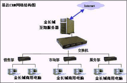 易達(dá)CRM應(yīng)用于小型網(wǎng)絡(luò)環(huán)境(或單機(jī)應(yīng)用),對(duì)于中小型企業(yè)只需建立PC級(jí)局域網(wǎng)絡(luò)環(huán)境即可,同時(shí)可以通過(guò)服務(wù)器聯(lián)入INTERNET,便于異地業(yè)務(wù)人員的數(shù)據(jù)錄入和EMAIL數(shù)據(jù)傳送。(在此易達(dá)CRM與相關(guān)品牌的PC服務(wù)器、PC商用機(jī)建立戰(zhàn)略合作關(guān)系,以較優(yōu)惠的價(jià)格向中小型企業(yè)提供性?xún)r(jià)比很高的全面解決方案包,這是對(duì)中小型企業(yè)用戶(hù)、硬件廠商、易達(dá)軟件三方均有益的解決方案)。