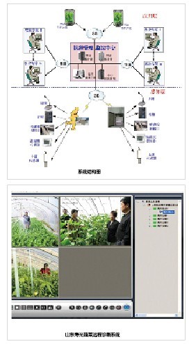 在應(yīng)用案例中,山東壽光蔬菜遠(yuǎn)程診斷系統(tǒng),是基于大唐電信無(wú)線EDGE/TD視頻系統(tǒng)平臺(tái)的遠(yuǎn)程農(nóng)業(yè)專家系統(tǒng)。應(yīng)用此系統(tǒng),可對(duì)大棚里的溫度、濕度進(jìn)行采集,并疊加到視頻圖像上,進(jìn)行上傳。農(nóng)業(yè)專家可通過視頻圖像判斷植株生長(zhǎng)情況、檢查是否有病蟲害、大棚的溫濕度是否合適,并可以檢測(cè)土壤的酸堿度等信息,為農(nóng)戶提供相應(yīng)的指導(dǎo),獲得了良好的社會(huì)效益和經(jīng)濟(jì)效益。