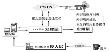 接入層主要負(fù)責(zé)公網(wǎng)(固定網(wǎng)、移動(dòng)網(wǎng)、互聯(lián)網(wǎng))與系統(tǒng)相接的部分,處理電話呼入/呼出的信令、話路的交換及互聯(lián)網(wǎng)的接入、數(shù)據(jù)的處理。