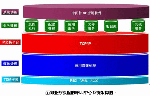 面向業(yè)務(wù)流程的呼叫中心基礎(chǔ)平臺采用水平式系統(tǒng)架構(gòu),此種架構(gòu)方式屏蔽了底層功能(如交換、媒體處理)的技術(shù)實現(xiàn),通過業(yè)務(wù)抽象為業(yè)務(wù)流程提供功能部件的組合,相對于傳統(tǒng)的垂直分散的結(jié)構(gòu)而言,用戶只關(guān)注業(yè)務(wù)流程,無需關(guān)心底層的技術(shù)實現(xiàn)。
