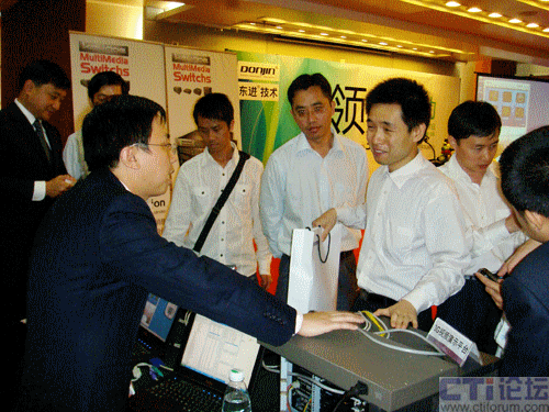 同時,會上全面、系統(tǒng)地介紹了東進Keygoe系列產(chǎn)品在3G環(huán)境下的創(chuàng)新運用及行業(yè)解決方案。并在現(xiàn)場對Keygoe多媒體交換機在3G增值業(yè)務(wù)中的折扣搜尋店、移動保安和電話QQ面對面等業(yè)務(wù)進行演示,展示了IVVR、視頻監(jiān)控和視頻會議等亮點功能,突出其視頻特性,成為此次巡展的一大熱點。