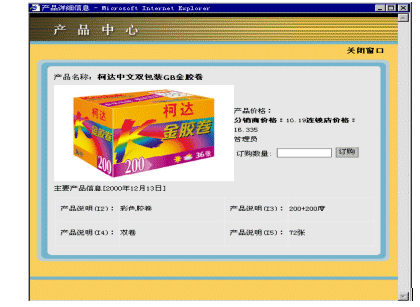 在用戶(hù)選擇一個(gè)分類(lèi)時(shí),此分類(lèi)下的產(chǎn)品將會(huì)被列出。用戶(hù)可以直接在想要購(gòu)買(mǎi)的產(chǎn)品后填寫(xiě)購(gòu)買(mǎi)數(shù)量,一次可以填寫(xiě)多個(gè)產(chǎn)品。這樣在處理產(chǎn)品訂購(gòu)的時(shí)候,大大的提高了效率。同樣,用戶(hù)也可以點(diǎn)擊詳細(xì)信息鏈接查看產(chǎn)品的詳細(xì)信息(參看圖2)。