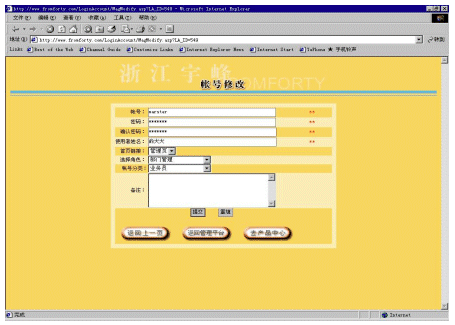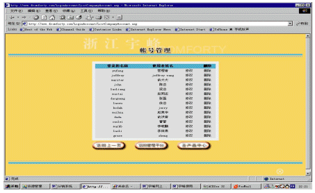 帳號(hào)系統(tǒng)主要是為適應(yīng)一個(gè)分銷(xiāo)商內(nèi)部會(huì)有多個(gè)不同等級(jí)的人使用這個(gè)系統(tǒng)。對(duì)于分銷(xiāo)商而言,它可以建立多個(gè)帳號(hào),并為每個(gè)帳號(hào)分配不同的權(quán)限,以及每個(gè)帳號(hào)可以對(duì)應(yīng)管理不同下屬企業(yè)(參看圖5和圖6)。還可以為不同的帳號(hào)提供不同的進(jìn)入頁(yè)面,使得用戶(hù)使用更加方便。