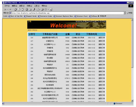 訂購(gòu)單查閱可以使用戶(hù)隨時(shí)都能查看以前和現(xiàn)在的訂購(gòu)記錄,并且可以查詢(xún)訂單的詳細(xì)信息。對(duì)于尚未確認(rèn)的訂購(gòu)單和退貨單,可以在此確認(rèn)或刪除。