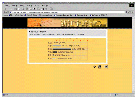 宇峰公司(www.fromforty.com)是柯達(dá)(中國(guó))有限公司在中國(guó)華東地區(qū)的總代理,負(fù)責(zé)管理華東地區(qū)近600個(gè)分銷(xiāo)商和連鎖店。公司非常重視信息化建設(shè),添設(shè)了大量的計(jì)算機(jī),建立起初步的管理系統(tǒng)。但是直到2000年還是依靠E-mail傳遞大量的Excel表格獲取需要的產(chǎn)品銷(xiāo)售和庫(kù)存的信息。這些表格對(duì)各級(jí)分銷(xiāo)商查詢(xún)和統(tǒng)計(jì)數(shù)據(jù)來(lái)說(shuō)非常麻煩,因?yàn)槊恐芤幚韼装賯(gè)訂購(gòu)單。整個(gè)處理過(guò)程非常緩慢,并且成本很高,也容易造成各種的數(shù)據(jù)錯(cuò)誤。而公司內(nèi)部對(duì)業(yè)務(wù)人員銷(xiāo)售情況的統(tǒng)計(jì),也頗為麻煩,因?yàn)橄录?jí)分銷(xiāo)商上報(bào)上來(lái)的數(shù)據(jù)準(zhǔn)確性差,并且不夠及時(shí)。處理這些表格對(duì)宇峰公司和分銷(xiāo)商以及連鎖店而言都是效率很低的,并且常常令人茫然不知所措。