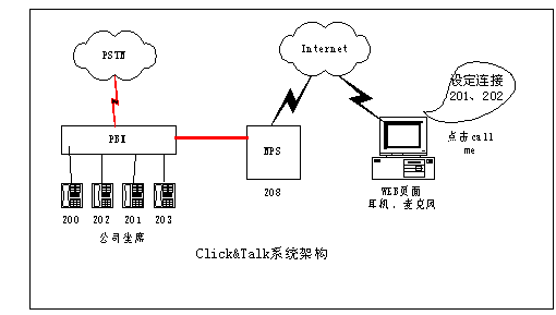 舉個(gè)例子,在傳統(tǒng)的網(wǎng)上交流手段下,對(duì)于一個(gè)在線商戶來(lái)說(shuō),其客戶如果需要與而且也容易造成客戶流失。現(xiàn)在采用Click&Talk系統(tǒng)后,一個(gè)在線的商戶只要將一個(gè)Click & Talk的按鈕嵌在在線商店里。世界各地的用戶只需要通過(guò)PC,點(diǎn)擊在線商戶的這個(gè)按鈕,就能與商戶電話聯(lián)系,或請(qǐng)求在方便的時(shí)間給予回?fù)。通過(guò)這種通信模式,世界各地的客戶都能和您保持密切互動(dòng)的聯(lián)系,而不用擔(dān)心長(zhǎng)途電話的費(fèi)用。還可以實(shí)現(xiàn)公司出差人員及分支機(jī)借助Click&Talk平臺(tái)和公司總部的通話的應(yīng)用,大幅節(jié)省話費(fèi)成本。