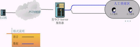 青牛CT-Server服務(wù)器由語(yǔ)音板卡加上青牛CT-Server軟件包組成,其特點(diǎn)是安裝容易、價(jià)格低。這種類(lèi)型的呼叫中心已經(jīng)具有了語(yǔ)音導(dǎo)航和人工服務(wù)的功能,可以處理小壓力的客戶呼叫了。