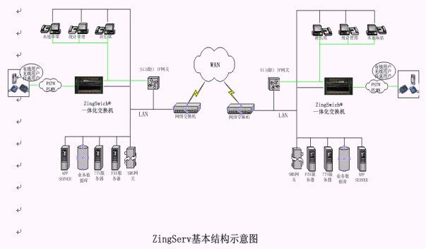 硬件:有ZingSwitch®的點(diǎn)都有ZingSwitch®交換機(jī),S口網(wǎng)關(guān)和CO8卡或E1 接口網(wǎng)關(guān)和E1卡。 無ZingSwitch®的點(diǎn)配置O口網(wǎng)關(guān)或E1