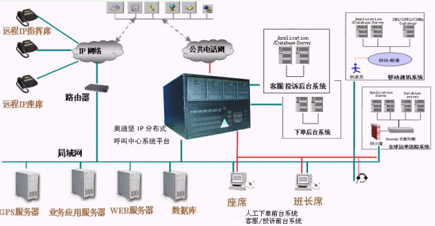 物流是商業(yè)發(fā)達(dá)社會(huì)必然高速度發(fā)展的產(chǎn)業(yè)之一,不僅僅要求物品從供應(yīng)地向接收地的實(shí)體流動(dòng)過(guò)程,同時(shí)也是信息流和資金流的過(guò)程,根據(jù)實(shí)際不同的需要,需要運(yùn)輸、儲(chǔ)存、裝卸、搬運(yùn)、包裝、流通加工、配送、信息處理等基本過(guò)程有機(jī)結(jié)合,從而完成用最短的時(shí)間合理將物品運(yùn)向目的地。在整個(gè)物流過(guò)程中,涉及到的各個(gè)環(huán)節(jié),分散在不同的區(qū)域,需要一個(gè)信息平臺(tái)將整個(gè)物流環(huán)節(jié)聯(lián)接起來(lái),及時(shí)把握客戶的定貨需求,進(jìn)行車(chē)輛的調(diào)度管理,庫(kù)存管理以及票據(jù)管理等,力求實(shí)現(xiàn)用最少的庫(kù)存,最短的運(yùn)輸距離滿足客戶的需求。現(xiàn)代物流企業(yè)與以往的物流企業(yè)不同,不僅僅局限于物流中的某一個(gè)環(huán)節(jié),而是普遍采用了信息化管理技術(shù),如ERP、物流管理(LM)、SCM等應(yīng)用系統(tǒng),并通過(guò)Internet將遍布在各地的物流中心與客戶連接起來(lái),形成一個(gè)高效率的物流配送網(wǎng)絡(luò)。建立在奧迪堅(jiān)IPDCC的分布式呼叫中心平臺(tái)上的光大科技物流客戶服務(wù)系統(tǒng),以IP技術(shù)為核心在網(wǎng)絡(luò)上構(gòu)建一個(gè)語(yǔ)音和數(shù)據(jù)的統(tǒng)一平臺(tái),在一臺(tái)服務(wù)器上融合了CTI、PBX、ACD、VoIP、Voice、Mail,Recording,Call
