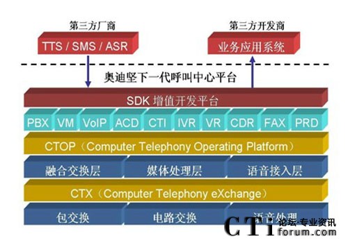 傳統(tǒng)型的語音交換機(jī)在設(shè)計(jì)之初,只側(cè)重于語音交換能力,并沒有考慮到呼 叫中心這種需要集成數(shù)據(jù)的應(yīng)用模式,因此基于傳統(tǒng) TDM 交換機(jī)的呼叫中心系 統(tǒng)都需要外掛 CTI 服務(wù)器,至于基于語音板卡、傳統(tǒng)型 IP-PBX 或軟交換的呼叫 中心系統(tǒng)也不例外。而奧迪堅(jiān) IP 呼叫中心平臺(tái)在設(shè)計(jì)伊始,就專門針對于呼叫 中心的應(yīng)用,在底層已經(jīng)將 PBX、CTI、IVR 等核心功能緊密地融合在一起了, 在系統(tǒng)集成度方面遠(yuǎn)遠(yuǎn)優(yōu)于傳統(tǒng) TDM 交換機(jī)、語音板卡、傳統(tǒng)型 IP-PBX 或軟 交換的解決方案。