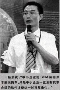 楊波說(shuō):“中小企業(yè)的CRM實(shí)施原本就很簡(jiǎn)單,只是中小企業(yè)一直沒有找準(zhǔn)合適的軟件才使這一過(guò)程復(fù)雜化!