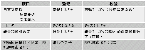 對(duì)Nuance方案,鑒別使用的密碼接口方案或類(lèi)型都不受限制。各公司可自由選擇最適合于應(yīng)用系統(tǒng)的任何接口;如果以后覺(jué)得別的接口更加有效,用戶(hù)無(wú)需選擇新的技術(shù)提供商即可改變接口。聲紋鑒別中的這種靈活性和實(shí)用性是前所未有的。下表列出部分Nuance可實(shí)現(xiàn)的不同用戶(hù)接口: