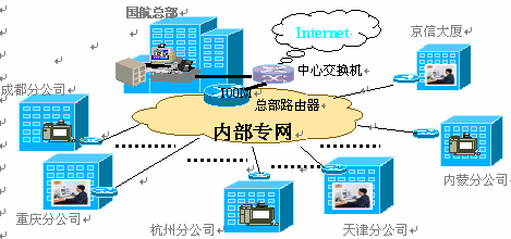 國(guó)航營(yíng)銷(xiāo)部需要在已有的網(wǎng)絡(luò)平臺(tái)上,建立一個(gè)能進(jìn)行總部與各分公司之間交互式溝通的環(huán)境,需要一種網(wǎng)絡(luò)多媒體協(xié)同工作的應(yīng)用。