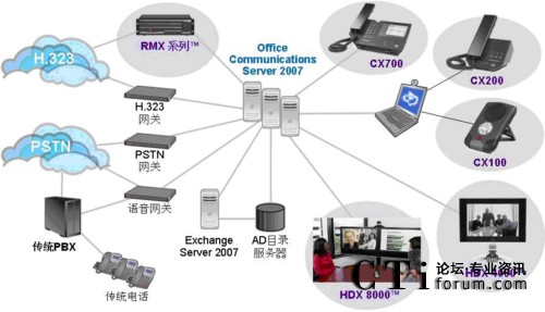 點(diǎn)對點(diǎn)互通:Office Communicator 2007客戶端能夠與Polycom HDX進(jìn)行音視頻呼叫PolycomCX700電話可以實(shí)現(xiàn)與Office Communicator和Polycom HDX的語音通話 簡單的多方會(huì)議Office Communicator 2007客戶端可以通過撥打RMX2000虛擬會(huì)議室加入多方會(huì)議;Polycom RMX 2000可以召集多臺(tái)Polycom終端和OCS客戶端加入同一會(huì)議。