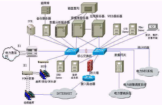 - 具備網(wǎng)絡(luò)呼叫中心和虛擬呼叫中心功能,支持全省集中、大區(qū)集中以及外包服務(wù)等;