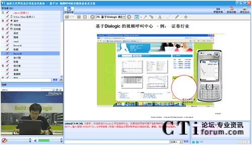 作為最早將3G語音視頻技術(shù)引入中國的世界級(jí)技術(shù)提供商,Dialogic在語音應(yīng)用和3G視頻一直具有領(lǐng)先競爭力。在此次“基于3G視頻呼叫的多媒體業(yè)務(wù)及方案”網(wǎng)絡(luò)研討會(huì)上,Dialogic中國區(qū)技術(shù)總監(jiān)陳益斌,以音視頻的在線直播方式,親身向與會(huì)觀眾講解Dialogic基于3G視頻呼叫的業(yè)務(wù),以及與3G數(shù)據(jù)業(yè)務(wù)的區(qū)別等前瞻3G視頻技術(shù)。