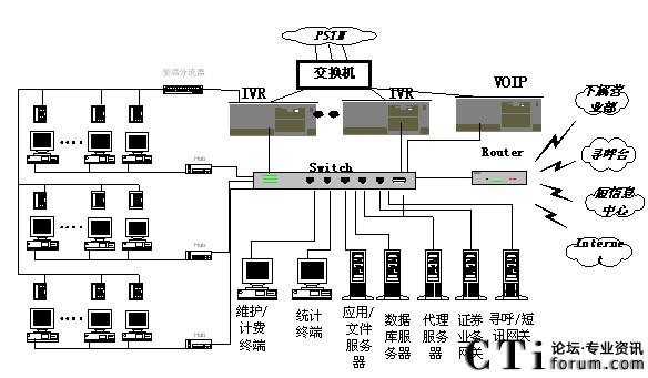 前端交換設(shè)備提供電話用戶、傳真用戶以及ISDN用戶、特殊終端用戶、移動(dòng)短消息、Web Call、雙向?qū)ず舻鹊慕尤;?duì)于計(jì)算機(jī)用戶則可以通過(guò)通用的瀏覽器訪問(wèn)系統(tǒng)內(nèi)部設(shè)置的WWW服務(wù)器,從而進(jìn)行相應(yīng)的信息訪問(wèn)或WEB方式的業(yè)務(wù)處理。而具備WAP功能的手機(jī)用戶也可訪問(wèn)客戶中心。