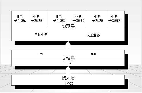 支撐層由ICM、IVR、ACD以及Web協(xié)同、座席管理、傳真、錄音管理、業(yè)務(wù)流程生成等子系統(tǒng)組成。形成獨立于用戶業(yè)務(wù)的通用支撐系統(tǒng),其核心是ICM