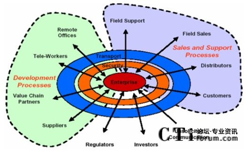 不同公司,生辰八字不同,發(fā)家史不同,決定了企業(yè)利益戰(zhàn)略點(diǎn)的不同,對(duì)統(tǒng)一通信的市場(chǎng)切入點(diǎn)和定位目標(biāo)就存在一些差異。軟件商采用以桌面軟件為基礎(chǔ),從上往下滲透的策略,設(shè)備商采用從基礎(chǔ)架構(gòu)出發(fā),從下往上突破的策略,但對(duì)統(tǒng)一通信的基本認(rèn)識(shí)可統(tǒng)歸為:以用戶(hù)為中心,實(shí)現(xiàn)跨時(shí)空的無(wú)限溝通。這里拋棄了網(wǎng)絡(luò)、終端、融合、平臺(tái)等技術(shù)層面的東西,而是完全從業(yè)務(wù)層面迎合了企業(yè)客戶(hù)的基本需求,企業(yè)聽(tīng)到了自然心動(dòng)。“要致富先修路”,企業(yè)要發(fā)展,就必須先修好這條通信大道。從中,我們也可看出統(tǒng)一通信不是一種技術(shù),也不是一項(xiàng)應(yīng)用,而是一種需求、一種企業(yè)對(duì)網(wǎng)絡(luò)、通信技術(shù)成熟發(fā)展之后的需求滿(mǎn)足的期望。此外,通過(guò)對(duì)這些主要廠家的UC解決方案進(jìn)行分析,也可以發(fā)現(xiàn),無(wú)論大家的口號(hào)怎樣,PPT里的網(wǎng)絡(luò)架構(gòu)如何多變,卻一致地采用SIP協(xié)議進(jìn)行會(huì)話(huà)控制,用IP協(xié)議進(jìn)行數(shù)據(jù)傳輸,通過(guò)應(yīng)用服務(wù)器(或類(lèi)似網(wǎng)元)提供各種統(tǒng)一通信功能。