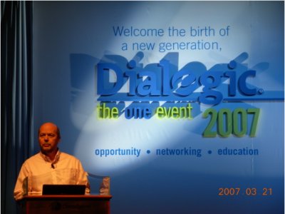 大會首先由Dialogic公司的全球資深副總裁 James Besley致辭!拔覀兓貋砹耍 ,James一句意味深長的開場白引來了全場長時間的熱烈鼓掌。是的,曾幾何時,Dialogic在全球CTI領域是何等的輝煌,上個世紀九十年代他們?nèi)〉眠^驕人的業(yè)績,占據(jù)了全球市場的絕大部分份額,稱之為當時CTI行業(yè)的先驅(qū)和領導者實不為過。