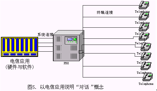 一般來說,一個基于電話語音識別的對話系統(tǒng)(如圖5所示),一般由識別服務器、應用服務器、電話交換機、智能交換機設備、 IVR設備等設備組成,電話交換機與成千上萬個電話終端通過各種交換設備相連接,電信應用軟件在這些硬件的支持下提供各種服務,如:1860查詢服務等。此時,電信應用開通的線數(shù)視系統(tǒng)的業(yè)務需求而定,一般總是大大小于終端連接的總數(shù)。系統(tǒng)連接數(shù)與終端連接數(shù)常常是1:1000或者1:10000的級別。"一路對話"是指物理上的一條線路,對于上述的電信應用,電信開通的每一條線路都是一路對話。