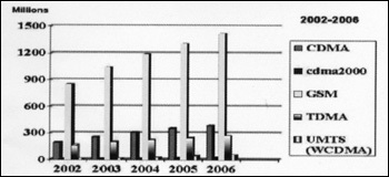 2001年12月全球數(shù)字移動(dòng)用戶的技術(shù)比例