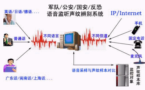 目前,犯罪分子、恐怖分子和間諜等的作案手段逐漸趨向高智能、高科技,為了逃避打擊,他們往往通過多種渠道進(jìn)行通信,如手機、固定電話、公用電話等與同伙或者親友聯(lián)系,有些特殊的被監(jiān)控電話是公用電話甚至是中繼線,由于通話量大,而且大量的通話都與案件無關(guān),涉及到被控對象的通話只是其中一小部分。這樣,公安和安全部門的執(zhí)法人員只能整天守候在偵控終端旁,花費大量的時間和精力處理大量無用的語音信息,等候嫌疑人的出現(xiàn);這樣,公安人員只能整天守候在偵控終端旁,花費大量的時間和精力處理大量無用的語音信息,等候嫌疑人的出現(xiàn);而一些在逃的嫌疑人,經(jīng)常幾個月才往特定的目標(biāo)處打一個電話,而且通話內(nèi)容又難以判斷,導(dǎo)致執(zhí)法人員很難分辨出嫌疑人的聲音。如何從大量的語音信息中提取嫌疑人的聲音,并更好地消除判別語音的過程中可能出現(xiàn)的人為誤差,從而提高對偵察對象身份識別的效率和準(zhǔn)確率,為偵查辦案提供可靠的情報,提高辦案效率,是有關(guān)部門迫切需要解決的問題。