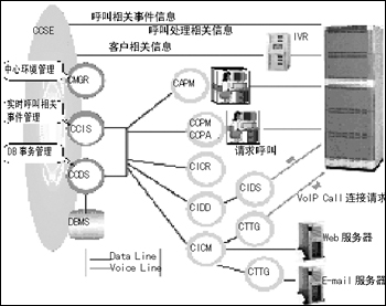 CTMP將Internet部分的呼叫控制緊密集成到傳統(tǒng)的CTI呼叫中心平臺中。Internet呼叫(VoIP、Chatting、E-mail、畫像通話)跟普通的電話呼叫一樣排隊,并分配到人工坐席上面,呼叫中心管理者可以統(tǒng)一管理這些零散的信息。