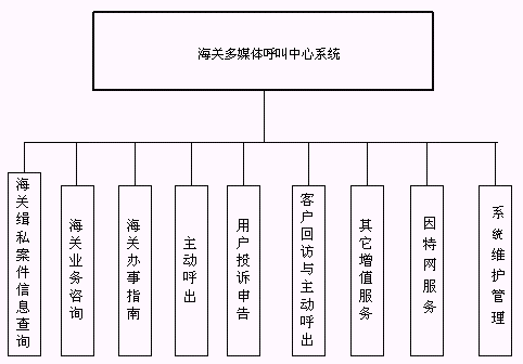 海關(guān)多媒體呼叫中心系統(tǒng)的功能結(jié)構(gòu)如下圖所示: