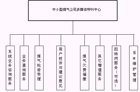 客戶利用電話、手機(jī)等撥打某一特服號(hào)碼(如9xxxx)進(jìn)入中小型煤氣公司多媒體呼叫中心系統(tǒng),本系統(tǒng)依托煤氣公司各類業(yè)務(wù)技術(shù)支持系統(tǒng)和網(wǎng)絡(luò)系統(tǒng),通過人工受理或自動(dòng)語音服務(wù)等方式全天24小時(shí)不間斷地為客戶提供各種服務(wù)。