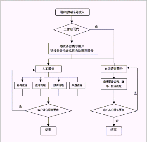 實(shí)現(xiàn)呼叫轉(zhuǎn)接分發(fā)功能:用戶撥打公共呼叫中心平臺(tái)的特別服務(wù)號(hào)碼,通過IVR語音流程的引導(dǎo)或人工的區(qū)分,根據(jù)用戶的需求將其轉(zhuǎn)接分發(fā)到專業(yè)的呼叫中心上去。如將打入公共呼叫中心平臺(tái)需要進(jìn)行消費(fèi)投訴的電話轉(zhuǎn)接分發(fā)到工商12315熱線。從而從根本上解決由于各呼叫中心之間完全獨(dú)立,市民要記住如此多的號(hào)碼幾乎是不可能的,一遇到需要求助的情況還是會(huì)有求助無門的感覺,不能真正發(fā)揮呼叫中心應(yīng)由的作用的問題。