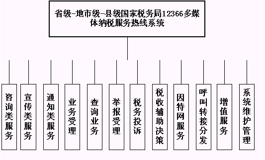 省級(jí)國家稅務(wù)局12366多媒體納稅服務(wù)熱線系統(tǒng)的業(yè)務(wù)功能結(jié)構(gòu)如下圖所示: