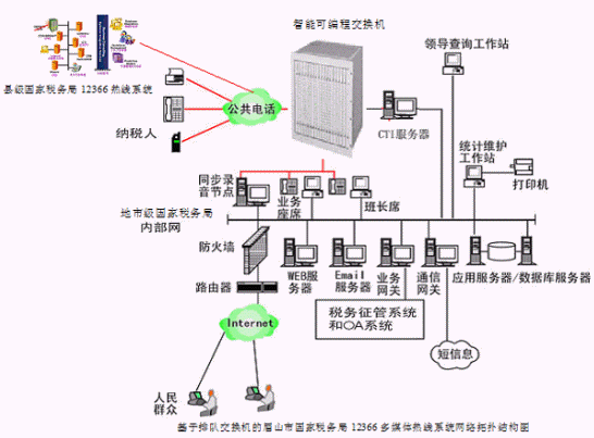 對于縣級(jí)國家稅務(wù)局12366多媒體納稅服務(wù)熱線系統(tǒng),則建議使用基于計(jì)算機(jī)語音板卡的方式,可以減少投資,同時(shí)具有良好的系統(tǒng)性能;對于地市級(jí)-縣級(jí)國家稅務(wù)局12366多媒體納稅服務(wù)熱線系統(tǒng),可選用排隊(duì)交換機(jī)作為語音接入設(shè)備,以保障系統(tǒng)的高可靠性和穩(wěn)定性;大大提高了系統(tǒng)的適應(yīng)面。