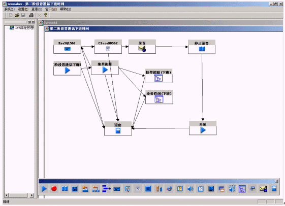 系統(tǒng)提供圖形化的語音流程生成環(huán)境,以方便用戶對(duì)語音流層進(jìn)行定制。流程生成器是一套可視化的流程設(shè)計(jì)工具,通過拖拉圖標(biāo)控件、鼠標(biāo)連線即實(shí)現(xiàn)呼叫中心CTI流程的制作,同時(shí),通過運(yùn)行時(shí)鏈接動(dòng)態(tài)連接庫(DLL),實(shí)現(xiàn)對(duì)業(yè)務(wù)數(shù)據(jù)庫的訪問;通過運(yùn)行時(shí)鏈接用戶DLL,最靈活地與用戶應(yīng)用系統(tǒng)結(jié)合;支持多種業(yè)務(wù)集成和動(dòng)態(tài)流程控制,方便用戶拓展業(yè)務(wù);采用事件驅(qū)動(dòng)機(jī)制、開放的結(jié)構(gòu),滿足各種語音系統(tǒng)的需要;支持不限個(gè)數(shù)、級(jí)數(shù)的IVR結(jié)構(gòu),可滿足用戶非常復(fù)雜的需求。